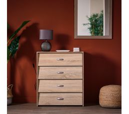 Meuble A Chaussures 4 Tiroirs Scarpa Imitation Chene Meuble A